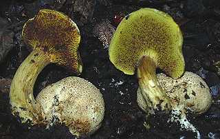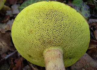 PORES : Adnés ou légèrement décurrents, jaunes à olivâtre, bleuissant au toucher
