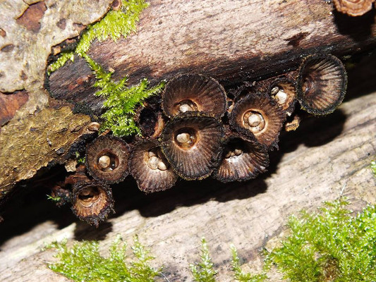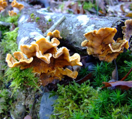 Habitat: en masse sur branches mortes de feuillus tombées au sol et sur souches, toute l'année, assez fréquent