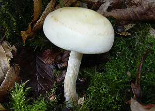 Chapeau: 5 à 15 cm de diamètre, glabre et visqueux, brillant par temps sec.Gris pâle avec parfois des reflets verdâtres vers la marge.