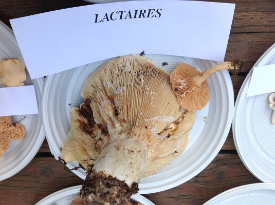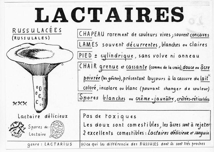 --> contient du lait blanc ou coloré, lamelles adnées ou décurrentes, spores blanches ---> Lactaires
