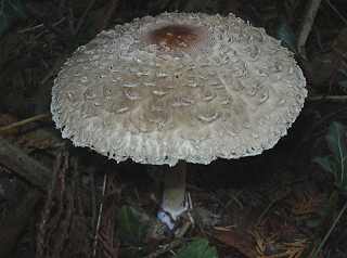 --> lamelles libres restent blanches en vieillissant, spores blanches, écailles sur le chapeau ---> Lépiotes
