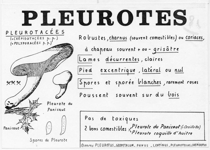 --> pied latéral ou absent en forme d’huître, spores blanches rosâtres ---> Pleurottes