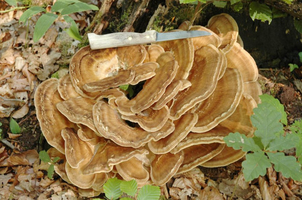Le Polypore géant est un champignon de très grande taille pouvant atteindre 20 à 80 cm de largeur. Il est constitué de plusieurs chapeaux ayant la forme d’un éventail, disposés en rosette.