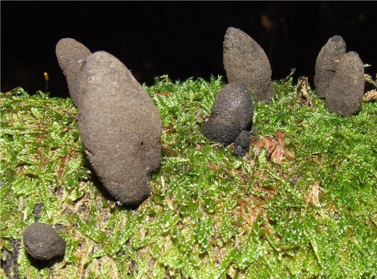 Description: en forme de petite massue plus ou moins régulière, 3 à 10 cm de hauteur, 1 à 4 cm de largeur, de couleur noire, mate, recouvert de fines pustules,