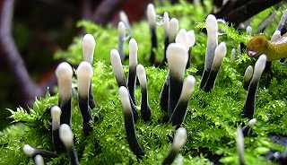 Chapeau : de 2 à 7 cm, en forme de rameaux dressés, d'abord comme des petits pilons puis se ramifiant tel des bois de cervidés, de couleur blanchâtre à base noire puis devenant entièrement noirs à maturité