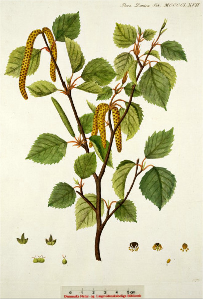 - Fleurs : Les fleurs mâles sont des chatons pendants, violacés et longs, qui peuvent projeter leur pollen au vent tandis que les fleurs femelles sont plus petites. La floraison a lieu en février. C'est une des premières floraisons anémophiles de l'année.