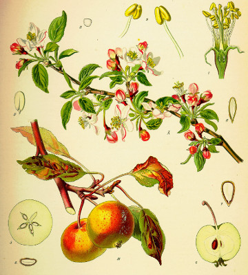 - fruits, pommes généralement petites (3 à 4 cm de diamètre) à saveur très âpre.