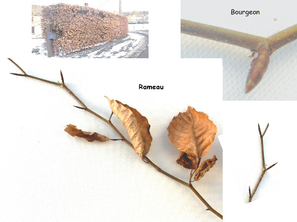 - Les feuilles alternes sont oblongues aiguës, doublement dentées, portées par des rameaux fins, brun vert. Elles sont marcescentes et restent sur l'arbre tout l'hiver. Elles ont la réputation de faire un bon humus.