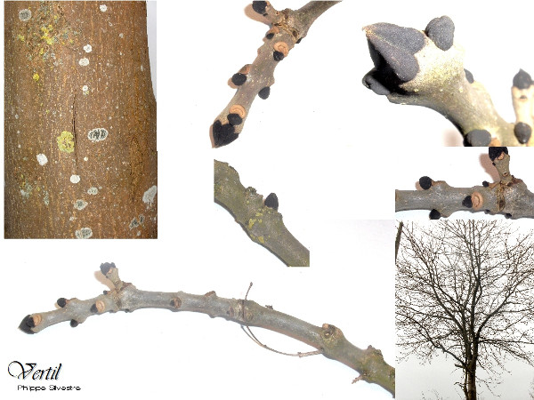 - écorce ancienne est unie et brun-cendré, ou peut être marquée de lenticelles blanchâtres quand elle est plus jeune.