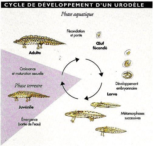 Les Urodèles conservent leur queue à l'état adulte; les membres postérieurs sont comparables aux antérieurs (marcheurs).