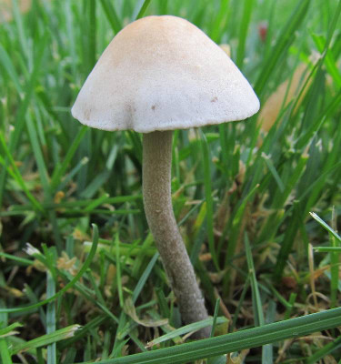 Chapeau: 1 à 3 cm de diamètre, convexe à campanulé, lisse, brunâtre, crème ou grisâtre par temps sec, hygrophane, marge un peu translucide et striée à l'humidité.